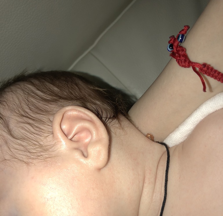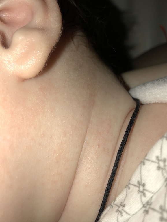 На щечках тоже просматривается, не потница это, чуть небольшая реакция на что-то, не обязательно аллергия, жкт формируется, скорее всего дело в ферментной недостаточности, но для таких малышей это норма, все оставьте как есть и смотрите реакция, если станет все красное и пятнами, то тогда ищите причину аллергии