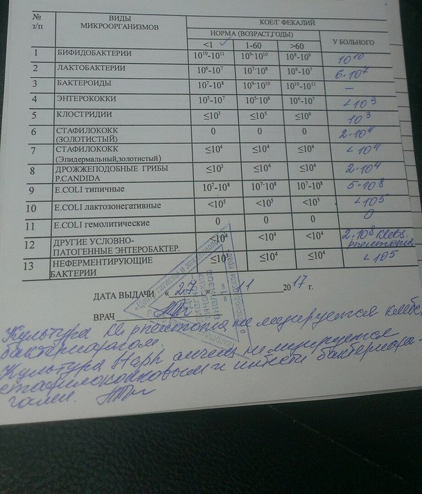 ДисбактериозУв. Мамочки подскажите очень нужен ваш совет. После сдачи анализа кала на дисбактериоз ребенку 3 мес. Обнаружили и кандиду и потогеные и неферметирующие бактерии (я так поняла стафилокок ). Врач не захотела лечить антибиотиками сказала попробуем их обойти. Хлорофилипт внутрь.