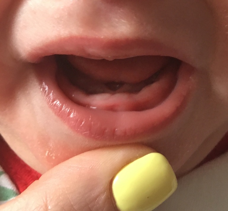 Зубки и проблемы во время прорезыванияДано: ребенок 2ой день плохо ест, хотя она итак плохо ест, но тут уж поям хуже чем раньше. Хнычет сегодня даже когда играешь с ней, одна играет меньше обычного. Ночь спала как обычно вроде. Грудь чаще не требует. Вот фото, но очень сложно сфооткать, она как будто чещет десна язычком.