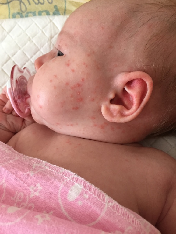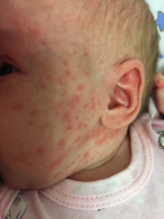 Высыпания на кожеРебёнку 1 месяц. В две недели пришлось докармливать смесью из-за нехватки грудного молока. За это время уже второй раз так сильно обсыпает. Что это может быть? Девочку смотрели три врача и у всех разное мнение. Что делать непонятно. Может кто-то сталкивался с данной проблемой и что в итоге это было?