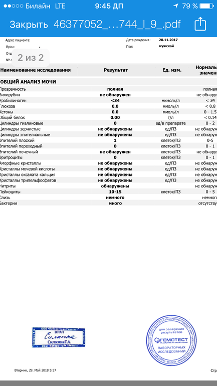 Уролог хвалила, что сдали и кровь, не только мочу. Сделали УЗИ, структурных изменений почек и мочевого не нашли. Но ещё два контрольных анализа мочи будет. И просила сдать посев мочи на случа, если лечение не поможет - тогда нужны будут антибиотики.