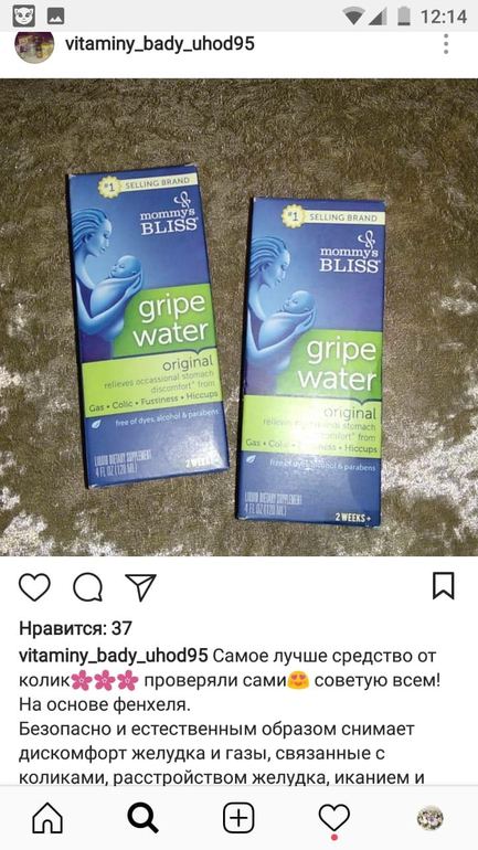 КоликиВсем привет! Девушки, кто-нибудь пробовал эту водичку от коликов? Я пробовала эспумизан, укропную водичку, плантекс, массаж, горячую пелёнку, выкладывать на животик - ничего не помогает, по ночам стабильно не спим. Может эта водичка поможет?
