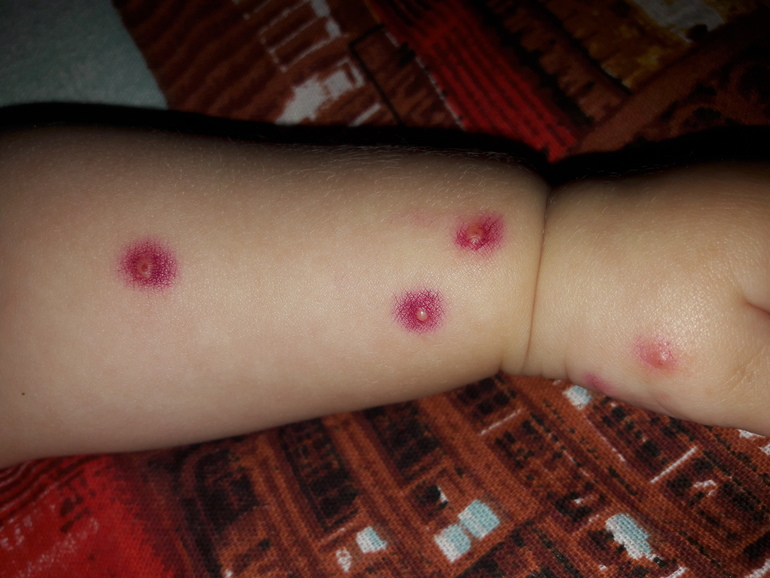У старшей была зимой ветрянка, а мы как раз только родились. Так у нее прыщики эти были мягкие и лопались, была небольшая темпа, а у меньшей они твердые прям. И сначала пятно, а потом волдырь, при этом никаких симптомов нет. Я уже с ума схожу. Их все больше и больше.