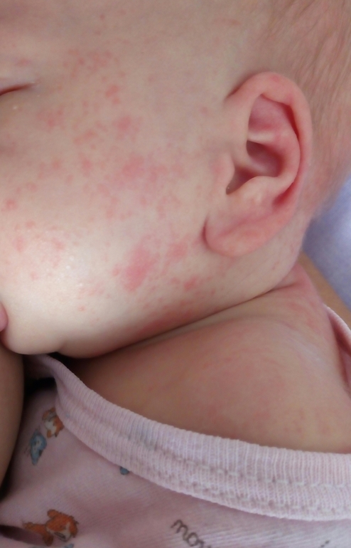 АллергияДевочки,вынуждена вчера была дать ребенку один раз смесь,а сегодня мы вот такие "красивые"!Это аллергия?Первое фото вчера,фотографировала акне новорожденных(врач подтвердила,что это акне),а второе фото вот сегодня.