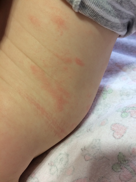 Были у педиатра, сказала, что это я что-то съела. Сказала мазать бепантеном и все. Мазала, но не помогло. Да и я не ела ничего нового.. Теперь уже и на спине, и на ножке(((
