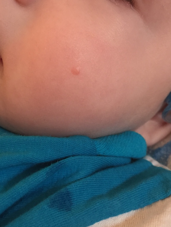 И вчера стала замечать у ребёнка на лице и за ухом странные прыщики. Вчера их было 2,а сегодня их уже 5,больше ни где на теле нет.