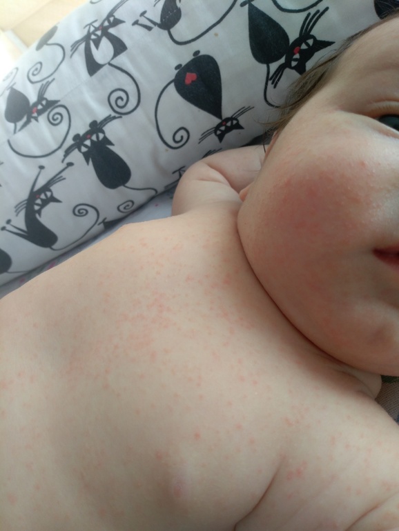 Снова сыпь... Локализация лицо, шея, руки, грудь и живот..... От аллергии дала толку нет... Сыпь как была так и осталась