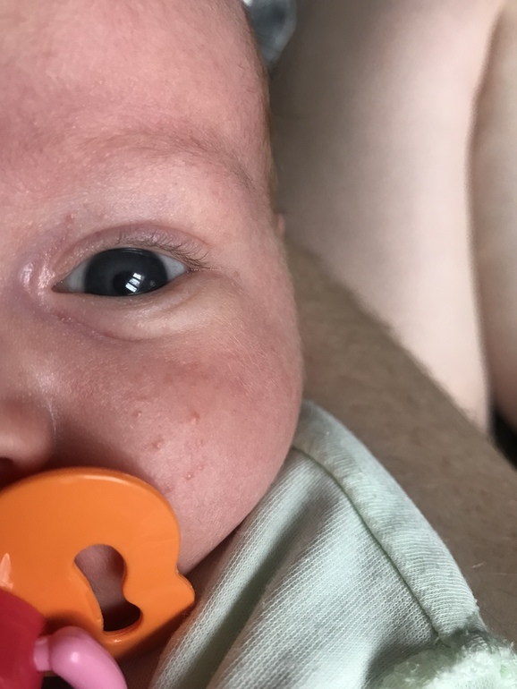 Акне новорожденных, не беспокоится, не трогать, не мазать, не ковырять. Само все пройдет