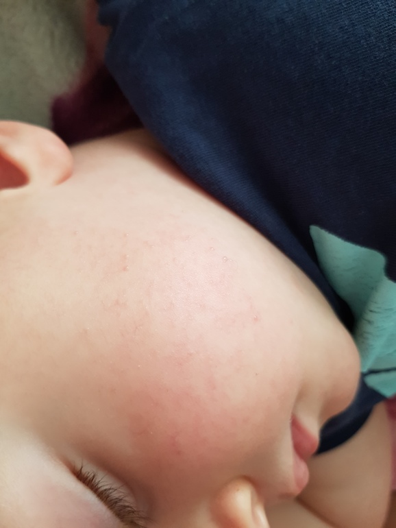 У моего на щечках также было, но у нас прошло через недели две, тут хорошо написано про различные кожные раздражения . Советую почитать https://www.babyblog.ru/community/post/01medicina/3185981#comments