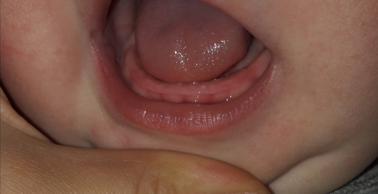 Нет зубов. Я у своего не смотрю никогда. Чего туда лазить. До года выйдут и ладно. Забейте