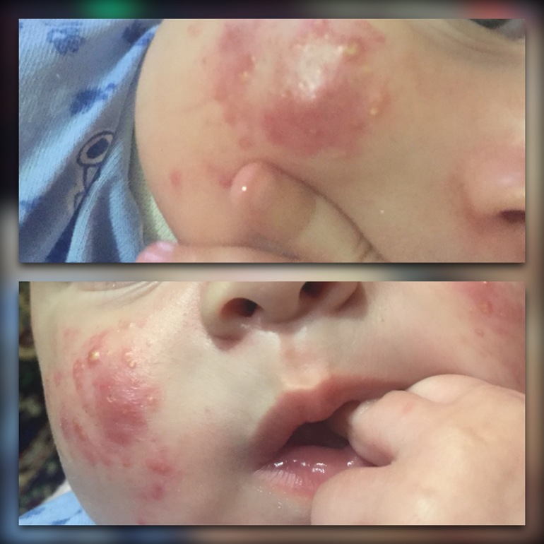 Высыпания на кожеМалышу 5 месяцев. Наверное со второй недели на щеках появилась сыпь, незначительная-сказали цветение. Но со временем она не проходила а появлялись расширенные поры с чёрными точками внутри, и затем уплотнения которые потом белели. Сказали аллергия-прекратить кормить грудью, давать смесь, изменений не наступило, посоветовали безглютеновую смесь-по итогу все так же, только хуже, аллерголог сказал противогистаминные, мазать адвантаном, но все в той поре, куда бежать, что сдавать??? Чистый только лобик, щеки и подбородок воспалены! :(((((