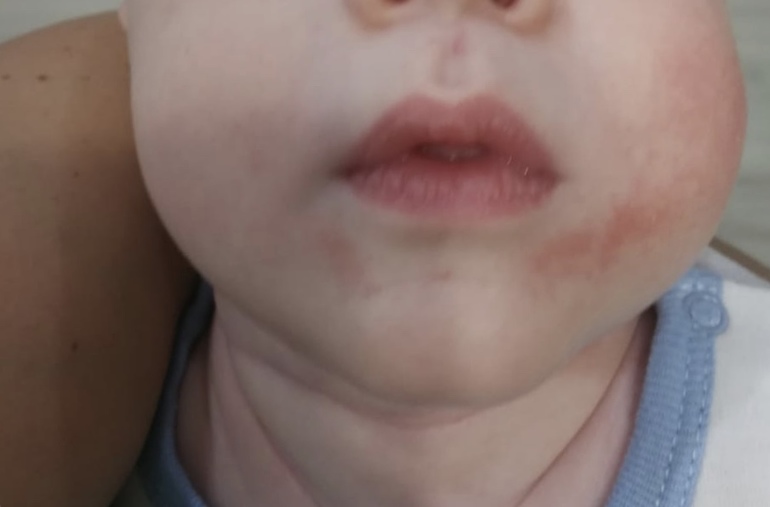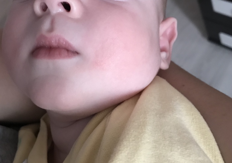 Высыпания на кожеВсем привет! У малыша стали появляться покраснения на щечке и в районе подбородка. Неделю эту. Причём утром встаёт нормальный, почти беленький, в течение дня раскраснеется и к вечеру сильнее всего видно; за ночь затихает. Фото будет утреннее и вечернее ниже. Почему не кажется аллергией: неделю даю антигистаминное (сначала думала что она) - ничего не меняется; на одной щеке в основном, вторая нормальная и на теле ничего (при аллергии не только лицо обычно). Ну и ничего нового не ела, смесь та же, мы на смешанном, нам 2,5мес. Единственное недели три даю вит Д, аквадетрим, почти месяц уже даю - раньше бы проявилось. Может раздражение обычное? Я заметила если спрыгивает то на эту щеку в основном (вытираю как вижу сразу), плюс иногда может ручку у лица держать, тоже с этой стороны.