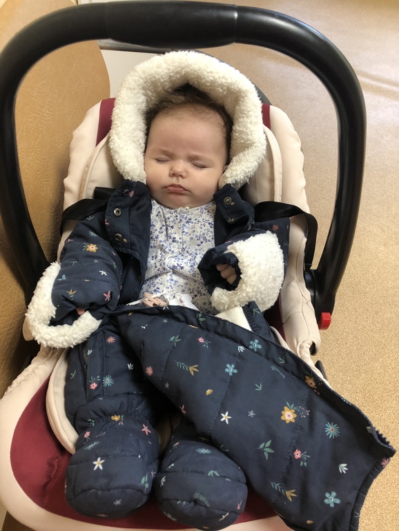 +7. Футболка, кофта, памперс, хб.слип. Шапка хб. Сверху флисовый слип (утеплённый). В люльку и вперёд. Ребенок теплый.