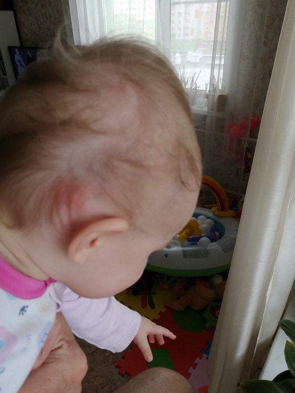 Утром встали пятно наше от АД (которое непостоянно на щеке у нас) стало ярче и сильнее и другую щеку обсыпало мелкой мелкой красной сыпью. Кушали все как обычно и дала ещё одну брюс. Капусту