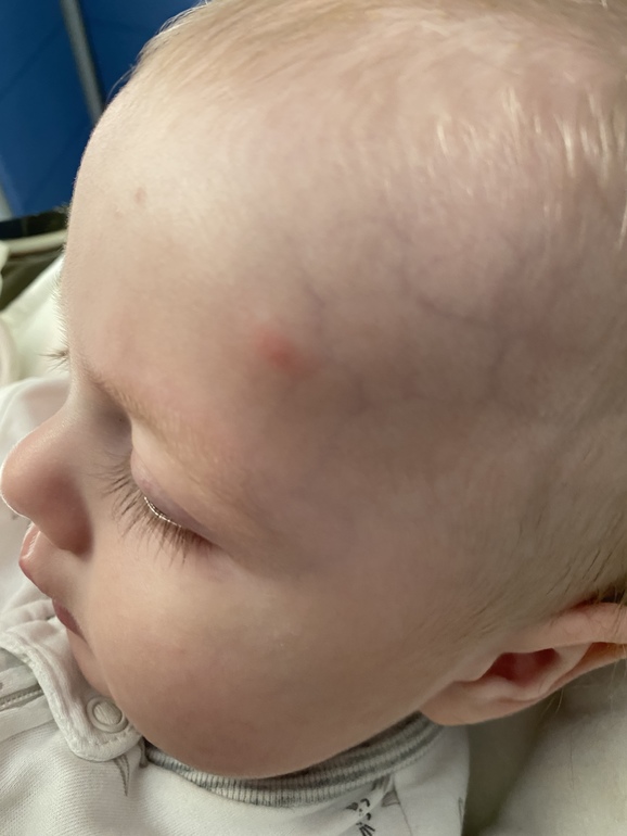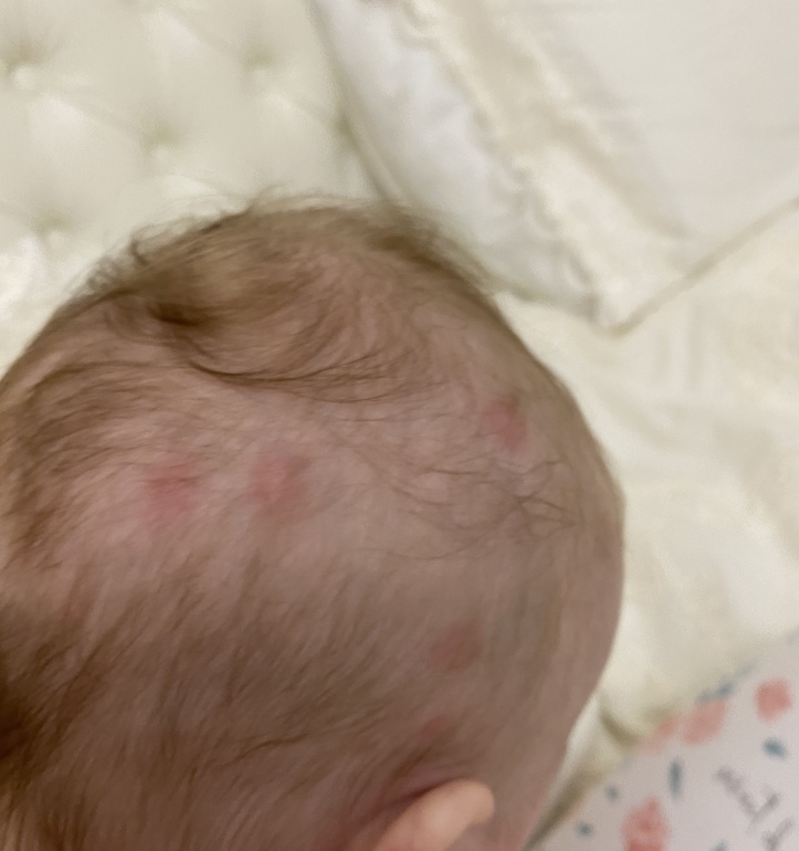 Высыпания на кожеДевчонки привет.В течении недели у нас появляются вот такие пятна ,на вид припухшие .просто появляются сразу по 3-5 «укусов».Кто может так кусать?комары летают по дому,но стоят фумигаторы,может не помогают.Может ли это быть аллергия на прикорм?Сначала заметила 3 пятна после первого прикорма,самостоятельно приготовленного кабачка.потом убрала его сразу,через день дала баночный гербер цв.капусту,высыпаний больше небыло.Но потом на 3 день прикорма на голове 5 пятен припухших,в серединке видно как папулка,вроде как похоже на укус.Но просто сразу 5?на следующий день побледнели,папулки бледные остались.Потом сутки ничего.Сегодня снова на лбу.Кто же это?или что?аллергия,комары,мошки?живем в своем доме,ожидать можно все что угодно(кроме клопов и т д,так как каждую неделю у нас убирают с парогенератором,всю мебель,кровати,матрасы чистят).
