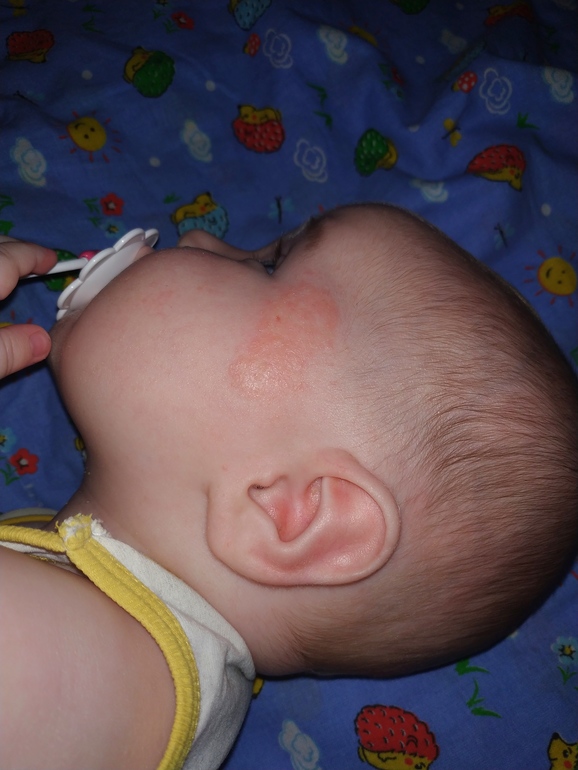 У сына было пятно на виске, с четким контуром, краснело, бледнело, шелушилось, бывало прыщики появлялись там. Сдали соскоб, диагноз кандидоз кожи. Назначили Клотримазол мазь 2 раза в день, Преднизолон мазь(но она гормональная) 1 раз в день. Оно вроде как проходило, как переставала мазать так опять.. я на свой риск немного начала мазать Кандид б 1 раз в день и Клотримазол 2 раза в день. Сейчас прошло все. У нас ИВ и прикорм. Исключили сладкий прикорм(фрукты) и цветные овощи на время лечения.