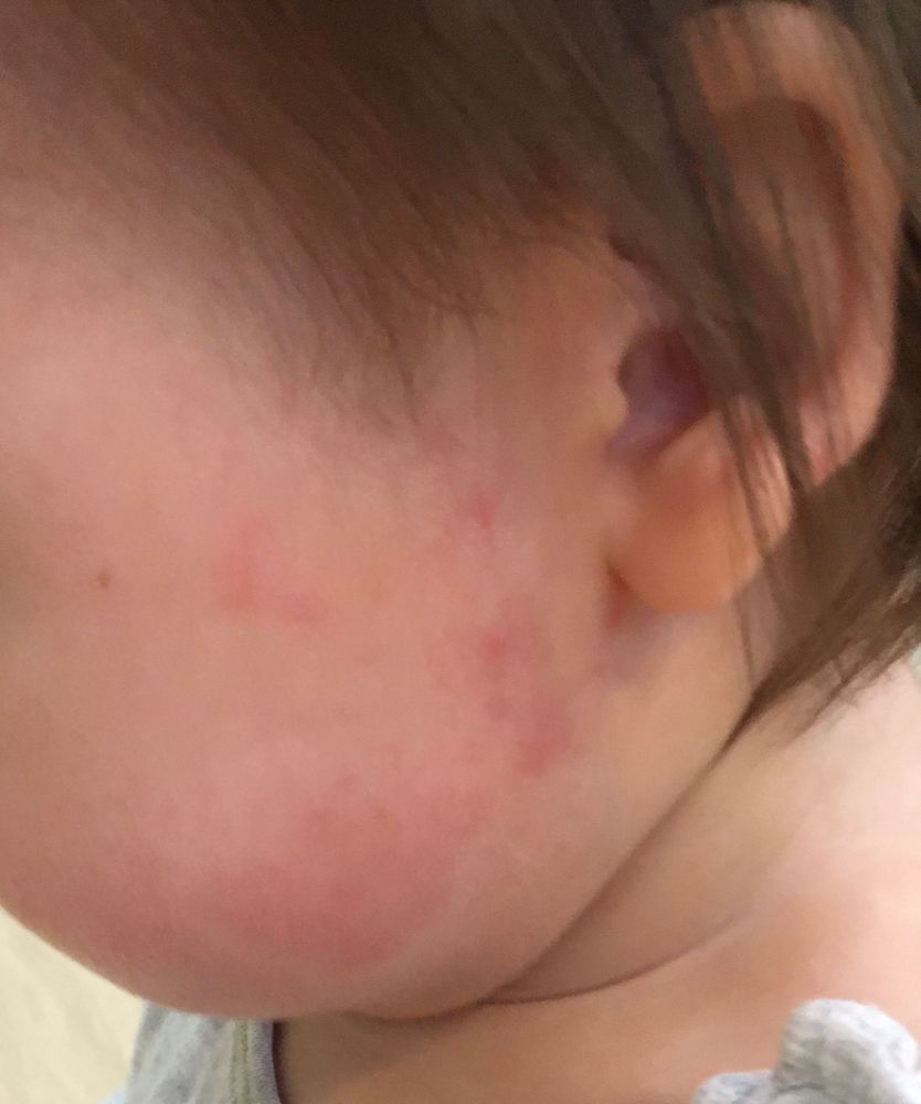 сегодня проснулись и вот такая картина . До этого были просто сухие щеки , сейчас чешет и они очень красные (