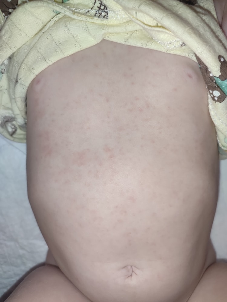Было подобное,тоже не понимала толи алергия,толи потница,живот в сыпи,а моська чистая,даже ванночку с марганцовкой разводила,на ночь судокремом мазала,лишь легкая краснота сходила,пупырки белели и появлялись новые,все побоку,но у нас был переход с нан на нутрилак,решила тупо смотреть недельку как себя будет вести данная сыпь,потница уйдет,аллергия если это она то либо от старой смеси пошла как накопительная,либо реакция на новую,через пару дней все прошло,что это было так и не поняла