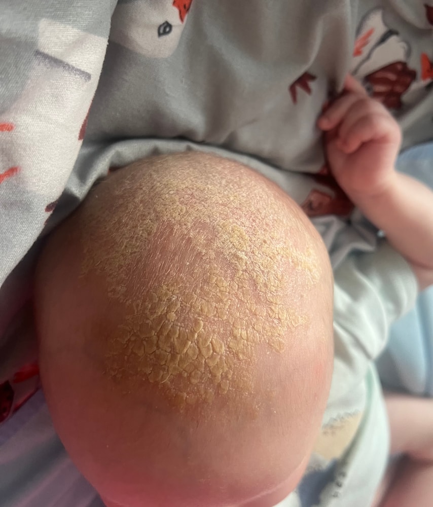 Нашей 3,10г уже и раз в год в жару летом возвращаются эти корочки. Я читала, что это бывает при себорейном дерматите. Купила цинокап спрей, он убирает за 2-3 дня, но там после исчезновения симптомов надо наносить ещё неделю. Одного курса хватает на год. До следующего лета. В этом году для профилактики решила мыть ла-кри раз в неделю.