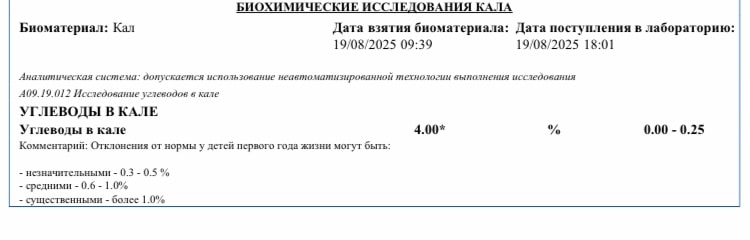 КоликиЗдравствуйте. Ребёнок (1,5 мес) где-то с трех недель мучается с газиками, сначала стул был несколько раз в день, далее уже недели две он один раз в два-три дня, а теперь еще и жидкий, как вода с белыми твердыми комочками, но так же не каждый день. Также ребёнок мучается от газиков, кряхтит, тужится и плачет, бросает грудь и плачет. Сдали анализы, результат на фото. Были у педиатра, прописала энторфурил и бак сет, но я читала , что лейкоциты в норме до 8-10, а у нас они и есть 8-10, а углеводы 4% это превышает норму и означает ЛН, она сказала ЛН нет, есть воспаление в кишечнике исходя из лейкоцитов. Диагноз написала: Функциональная диарея. В общем я запуталась, зачем энторфурил если это не назвать диареей, ведь стул не каждый день, хоть и жидкий.