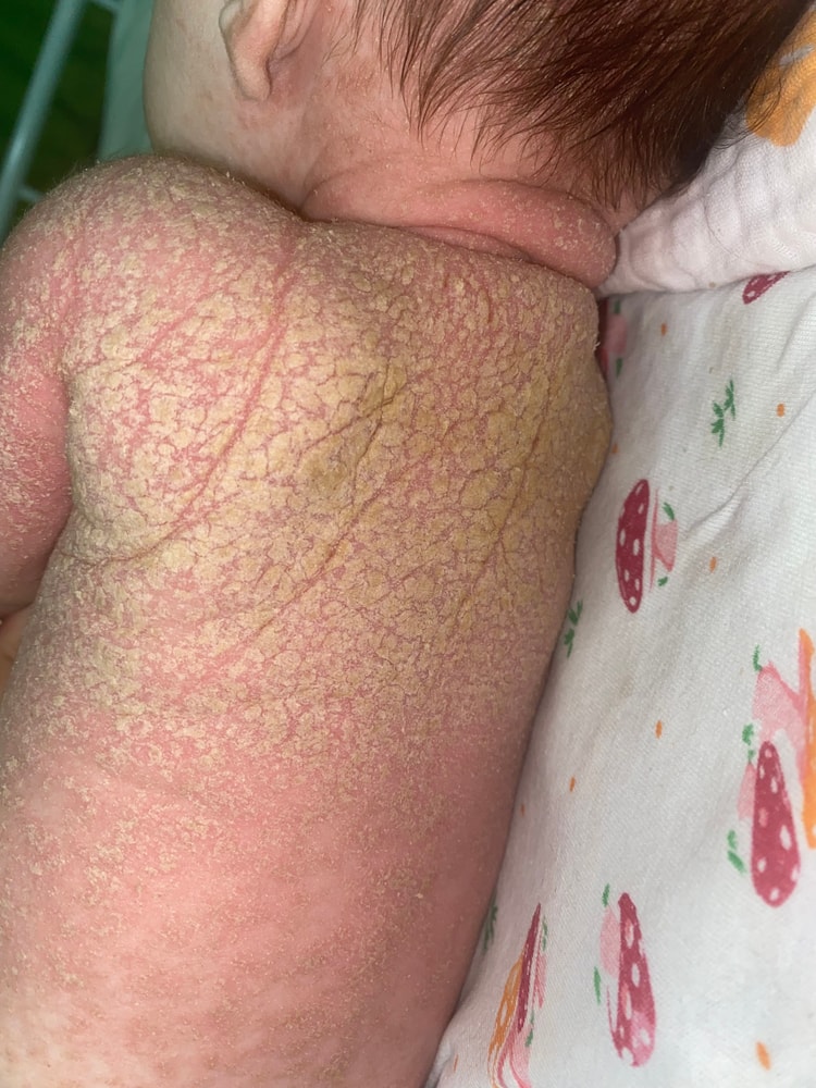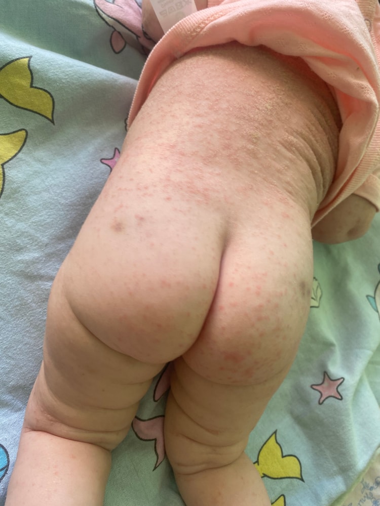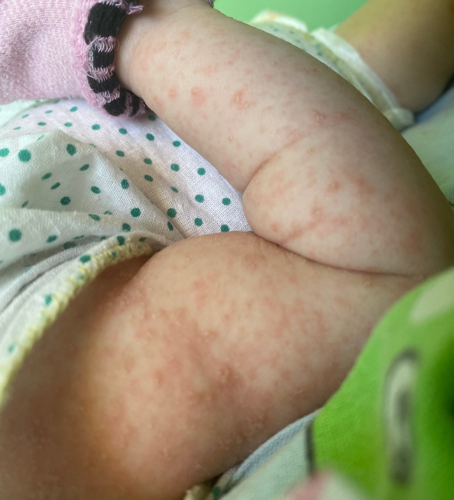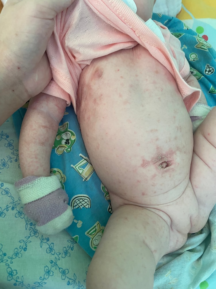 Всем здравствуйте! Прошу пожалуйста помощи, может кто-то сталкивался с такой проблемой… Дочери еще не было месяца, как у нее вылезло на спинке пару прыщиков, мы подумали, что укусил комар, но потом оно началось все больше и больше вылазить жуткая сыпь, я еще кормила грудью в этот момент, у нас случился понос, и мы вызвали скорую, и попали в больницу лежали с поносом и аллергией, сдали анализы, никакой инфекции не обнаружили, просто сказали, что я что-то не съела.. Кололи девочке антибиотик, давали лекарства от аллергии, и мазали мазью, мы пролежали там неделю, ничего не помогло, в последний день пришла врач и говорит видимо слишком слабый антибиотик, нужно менять, я психанула, написала отказ от лечения и ушла от туда!!! С возвращением домой, я решила перейти на смесь, потому что не проходил даже понос. бездейственно кололи неделю бедную девочку антибиотиками. После мы поехали в кожвен, взяли соскоб, анализ показал аллергический дерматит, прописали мазь под названием «адвантан» , капельки фенистил, мы все это пропили как положено, ничего не помогло, с каждым разом все было хуже и хуже, начало очень сушить эту сыпь, а особенно на спинке… мы ждали записи к аллергологу, съездили к нему, врач посмотрела нас и сказала, что лечить нас не будет, что нужно сначала лечь в детский стационар. мы сразу же поехали собирать вещи и ложиться в больницу, снова легли, глав врач пришла и говорит, что нужно менять смесь, еще мы снова же сдали анализы, и никакой инфекции не выявили, по анализам сказали, что в кале видно, что все это идет с кишечника, что аллерген поступает и всё вылазиет, на данный момент мы находимся в больнице уже 6 дней, первую смесь поменяли, не помогло, не подошла, сыпь еще больше, сейчас врач сказала купить смесь НУТРИЛОН ПЕПТИ АЛЛЕРГИЯ, сегодня первый день как мы ее купили и начнем давать доче, очень надеюсь на то, что она нам поможет! Просто пожалуйста посмотрите на фотографии сыпи моей дочери, это очень ужасно! больно смотреть 😢 Может кто сталкивался с этой проблемой, напишите, помогите пожалуйста разобраться с этой сыпью… Наши врачи честно говоря все ТУПЫЕ, и месяц не могли нам сказать из за чего аллергия. Эта сыпь по всему телу абсолютно везде, за ушами, в ушах, на голове и так далее…