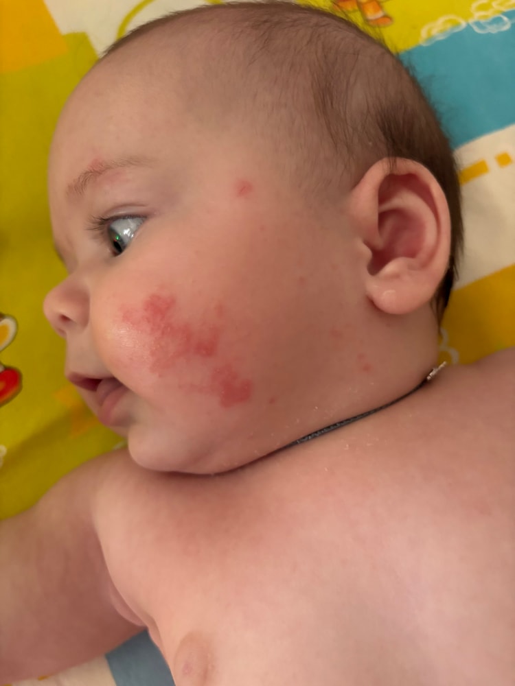 АллергияДобрый вечер. Помогите пожалуйста разобраться.. с самого рождения у ребенка проблемы с кожей на лице , в 1 месяц очень сильно цвела и долго , потом все прошло , сейчас нам 5,5 месяцев , в течении дня могут то обсыпать щеки то проходят , фото прилагаю
