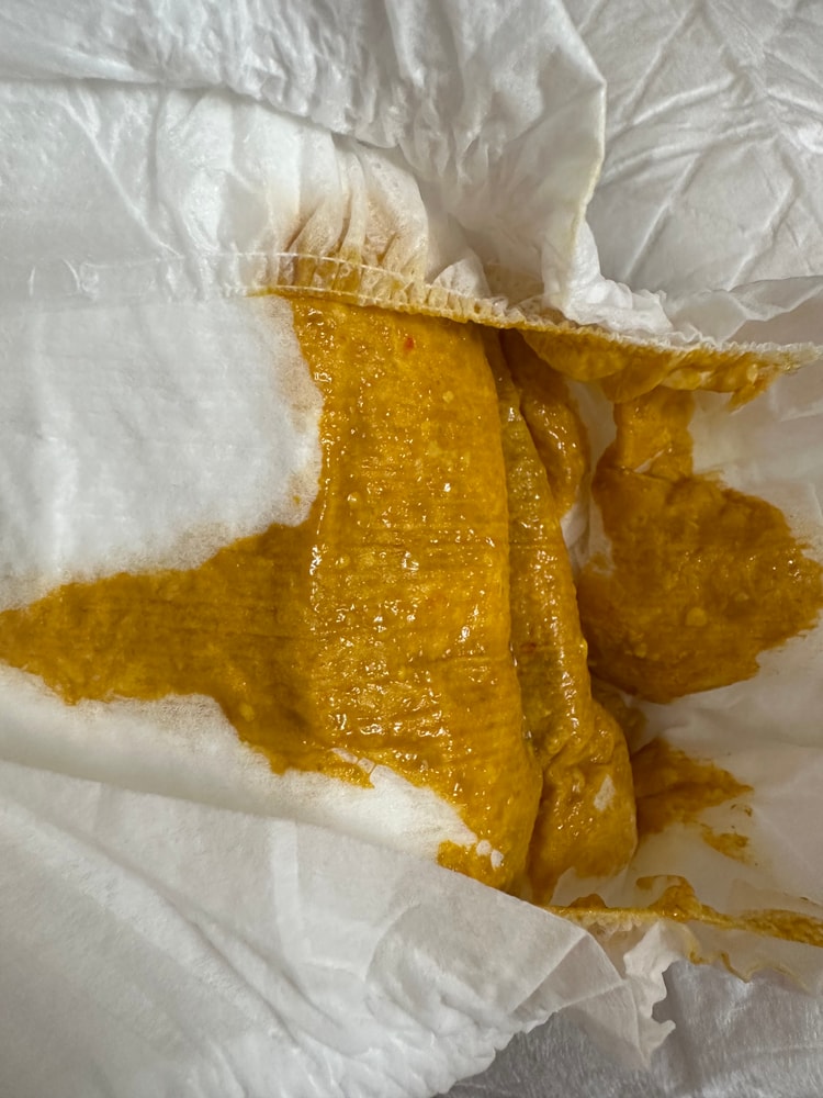 АллергияПодскажите, это все таки жидкий стул? Сегодня еще увидела 2 прожилки крови в кале. Ребенку 2 месяца. Фото прикладываю. Это абкм? Мы на гв.
