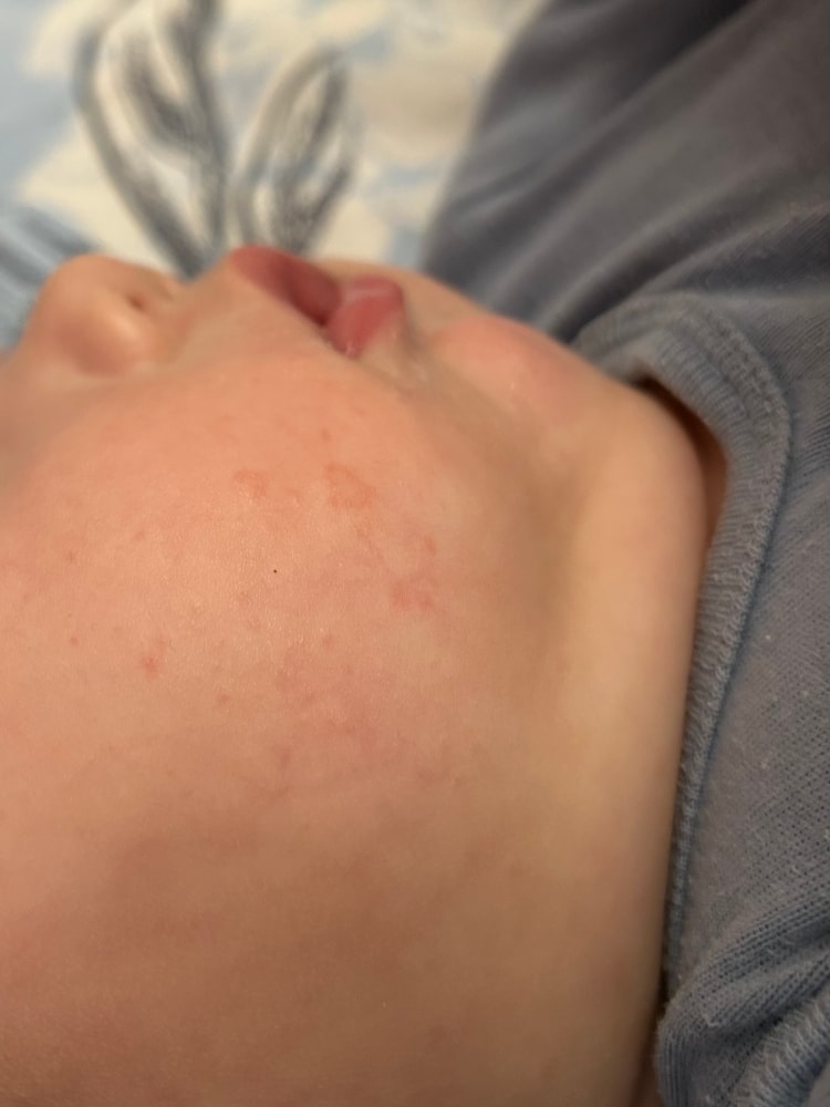 Или раздражение от слюней, или атопический дерматит. Сводите к дерматологу. Но в том, и в другом случае можно крем XeraCalm AD от Aven использовать - он и раздражение снимет и атопичную кожу защитит