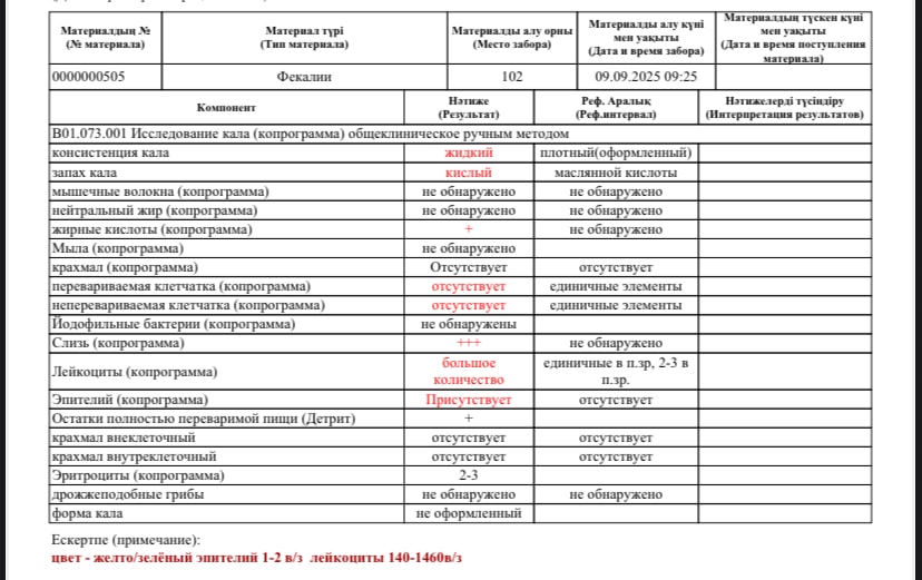 Высокие лейкоциты , жидкий стул со слизью и прожилки крови
