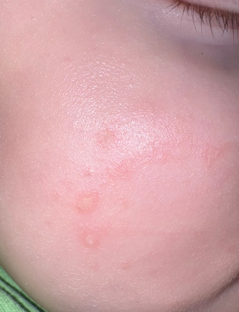 Кожные заболеванияЗдравствуйте, ребенку 5 месяцев, появились вот такие высыпания на щечках, что это может быть? К врачу только на следующей неделе, а я уже себе места не нахожу(