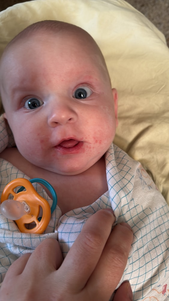 Нам 4,5 месяца, постоянно мусолит во рту пальцы, иногда игрушки, но в основном руки… слюни рекой, думаю скоро зубы…и началось раздражение.
