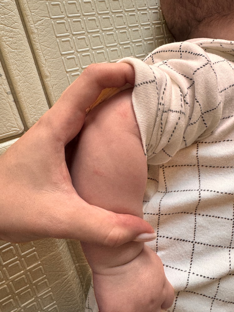 Всем привет! У грудничка 4 мес, недавно появились какие участки… вроде не чешет, они как бляшки и напоминают сухость кожи… на руках, ногах и вот на голове появилось🥲 что это такое? Как ухаживать?