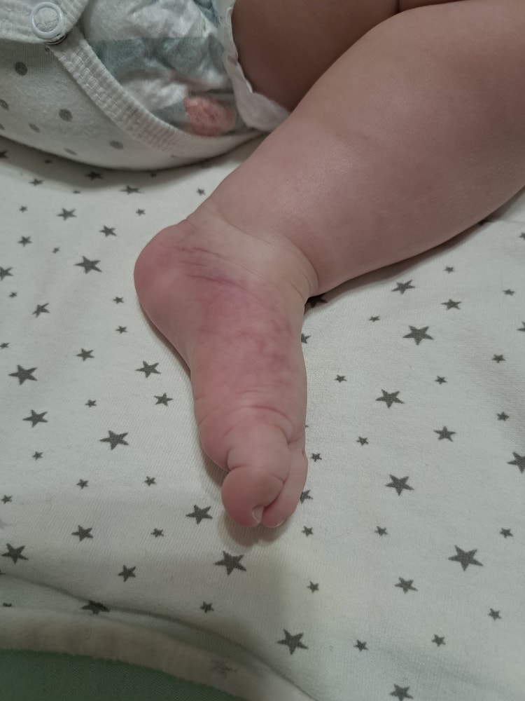 РазноеУ малышки на ножке какие то пятна похожие на то-ли синяк, то-ли на сосуды.. на ощупь все мягкое, трогаю дочь никак не реагирует, а выглядит очень настороженно.. нам через неделю 3 месяца.