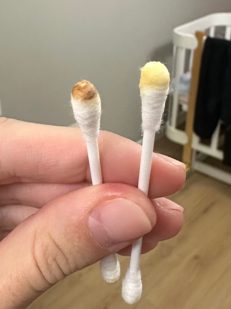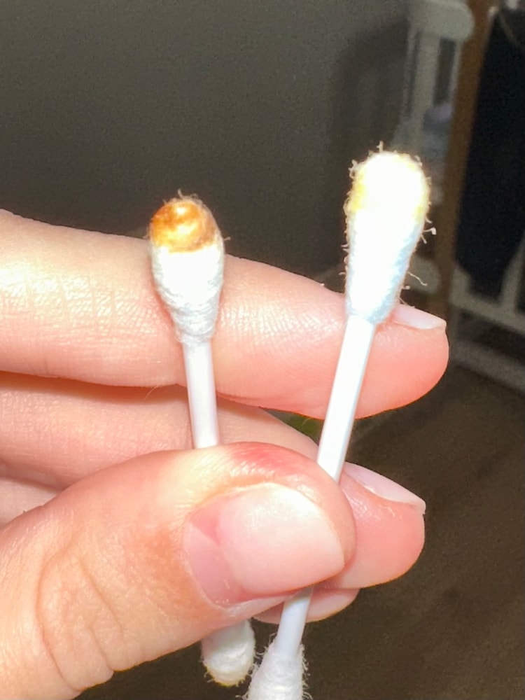 РазноеДочке 10 месяцев. Всегда при чистке ушек правая палочка с серой привычного масляного цвета, а левая прям очень тёмно-коричневая (без запаха). Не встречала такого у себя или родных. Кто-нибудь знает, что это?