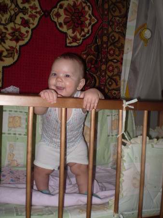 Спасибо! Теперь его не остановить вообще, только глаза открыл, сразу ищет за что бы зацепиться и встать, уже весь лобик в синяках( падает( но все равно встает))