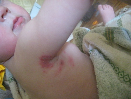 началось с того, что в пятницу вечером я увидела сзади на ручке, рядом с подмышкой пятнышко, похожее на сдертую кожу, круглое....намазала малавитом (антисептик)....на следующий день, с другой стороны складочки, там где это пятнышко касается чистой кожи образовалась красная точка....которая к вечеру разрослась в такое же пятнышко....еще одна точка обнаружилась неподалеку, тоже растет, правда медленнее....а сегодня утром обнаружила такую точку уже на ножке....которая сейчас уже и не точка (на фото)...