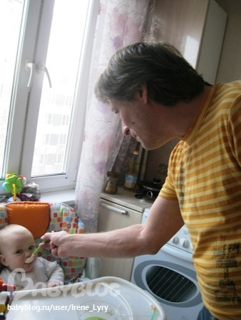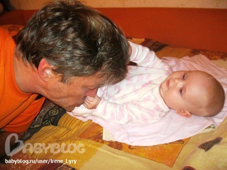 Папа у вас замечательный! Молодец!!! Наверняка, когда дочка подрастет, в садике подругам будет заявлять, что у нее самый лучший папа!!!Мой муж с нашим сыночком тоже возится, очень его любит, я спокойно могу сынульку с папой оставлять.