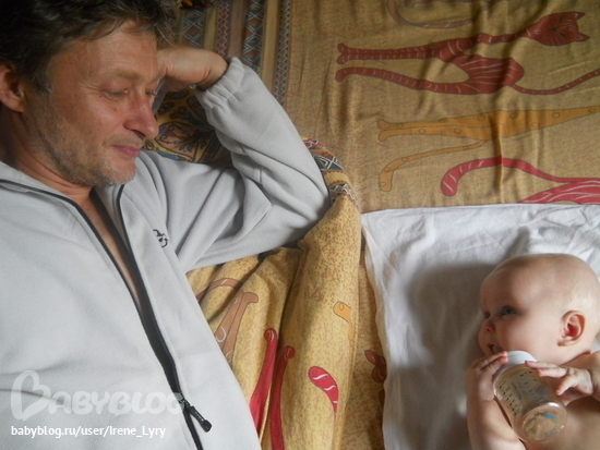 Недавно у Сани был период, когда она только грудь сосала, зато постоянно, а сейчас - ничего, вернулись к еде, значит, снова можно с папой оставлять...