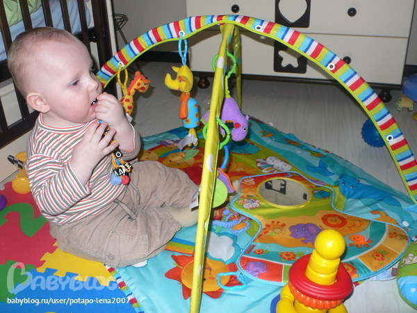 А на этом коврике он когда то играл только лёжа....Так вырос наш любимец.