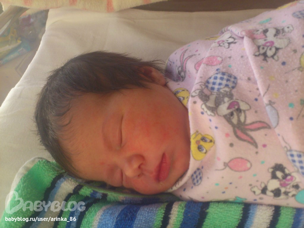 Ух,ты!Какие волосики у Вас при рождение!Здорово!Симпатичная малышка!