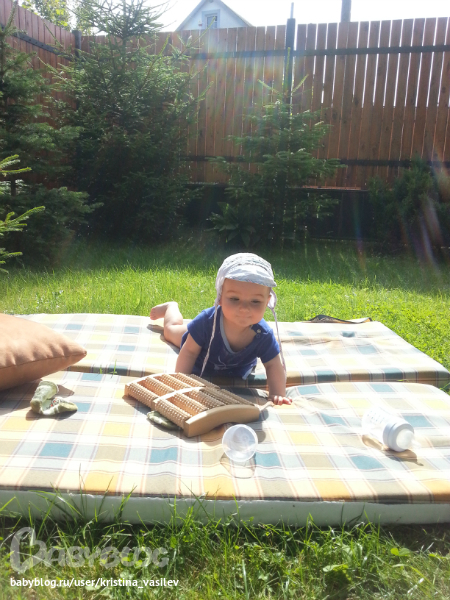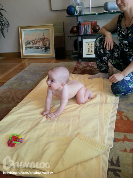 и сидит и ползает полным ходом - молодчинка!! Красопет растет такой! Слюнявчик заценила ;) мне понра ваш интерьерчик с картинами на полу!