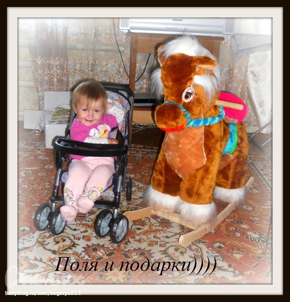 А крестная подарила Поле детскую коляску в которую она с успехом поместилась вместо ляли)))