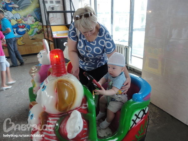 Бабуличка катает на машинке)))