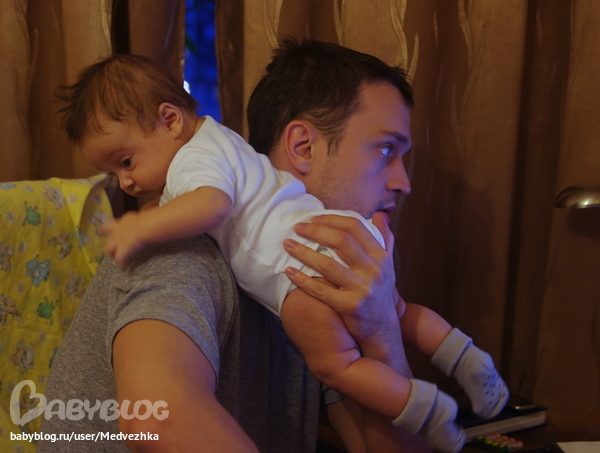 Ох уж эти папашки! У нас похожая картина. Нетбук вместо стационарного компа, поэтому возможны вариации поз))))