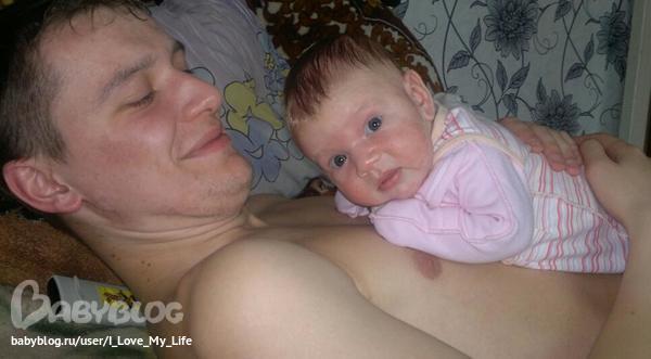 Вот Никулька с папой,ей тут 2,5 месяца: