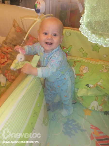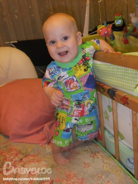 Физическое развитиеЧерез 10 денечков.Что мы умеем на сегоднешний день... Ну во первых именно сегодня Мирослав сам слез с кровати первый раз без чьей либо помощи,ура))Ползаем мы уже с 6,5 месяцев на четвереньках.Недавно заметила как сыночек стоит без поддержки,простоял 3-4 сек.и шлепнулся)) Очень хорошо ходит когда держим за ручки,либо сам вдоль дивана гуляет.Играет в ладушки.Очень забавно начал делать маневр с ладошкой и губами...говорит аааа и хлопает себя по губам...потешно получается))) Ящики различные и шкавчики его уже меньше интересуют,тк все их содержимое он уже достаточно изучил))Еще он наверное будет танцором...ни к одной мелодии не относится равнодушно...танцует)) Зубов у нас 6...правда шестой зуб вылез месяц назад и больше пока вылазить не хотят.Вес по прежнему чуть ниже нормы,зато рост соответствует возрасту! Очень разговорчивый мальчик,многое лапочет только вот папу пока не порадовал...не нравится ему это слово))