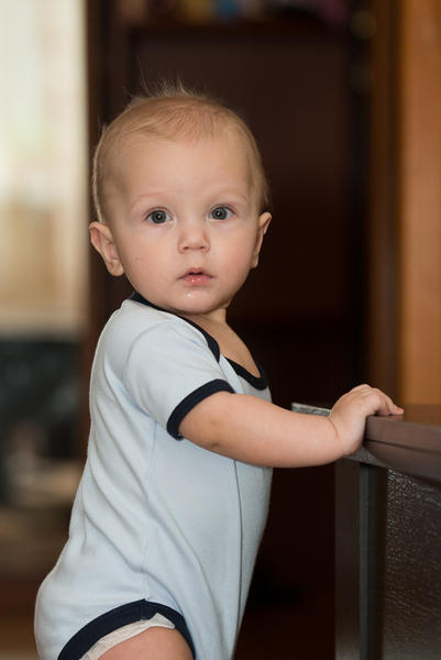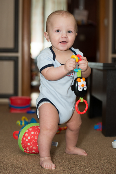 - уверенно стоит возле опоры, и уже примерно неделя, как я стала замечать, что иногда отпускает опору и стоит без рук! Немного покачивается, правда, но стоит). Стала про себя подсчитывать - рекорд вчера был полминуты! Потом аккуратно присаживается));
