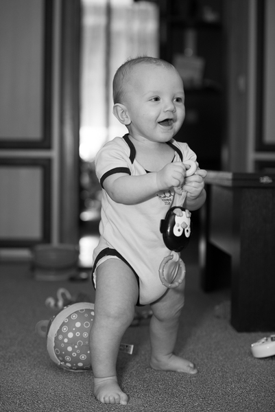 - манеж передумали покупать)) - пока думали, какой, стало поздновато уже))). Ну и хорошо). Ползает теперь за мной по всей квартире). Может и один где-то находиться, но недолго, да и мне спокойнее, когда он неподалеку. Вообще, наконец-то (тьфу-тьфу) я более-менее вздохнула спокойно)). Не боюсь уже каждую минуту, что вот сейчас упадет, ударится головой. Нет, конечно, иногда падает, но это бывает уже довольно редко. Становится аккуратным мальчиком). Наверное, это до тех пор, пока не пойдет)))). А пока я уже могу и приготовить, убраться немного и даже (о, слава Богу) чуть-чуть работой днем заняться (правда, самую малость));