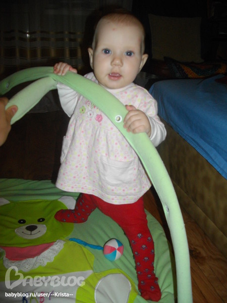 Физическое развитиеНу вот, мы научились сами вставать,стоять,ползать(думала не дождусь)!И теперь не могу отойти от нее ни на шаг,потому что может упасть со своей высоты и ударится головой,вот так и хожу за ней(с фотиком)!)