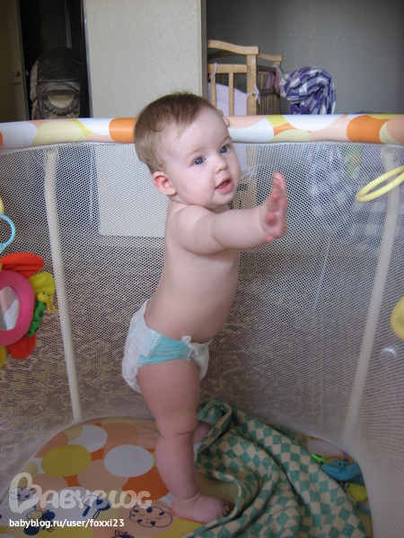В остальное время дочка была очень активной, постоянно ей, куда-то надо было лезть, карабкаться и так далее... В 8 мес. когда она начала стоять в кроватке, ночное развлечение у нее стало ходить вдоль бортов и просто орать ААААААААААААААААААААААААААААААААА, при чем не плакать, а просто тянуть букву АААА во весь голос, когда я начинала ругаться и говорить, что папе надо поспать, она начинала хохотать, и так мы жили 2 мес.